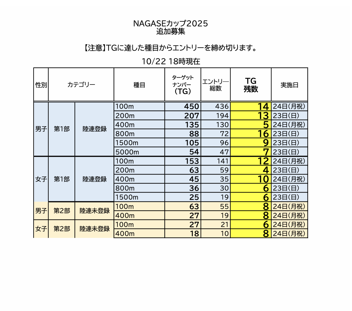 また、TGに達した種目からエントリーを締め切りますのでご注意ください。